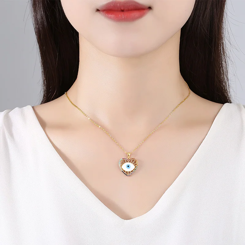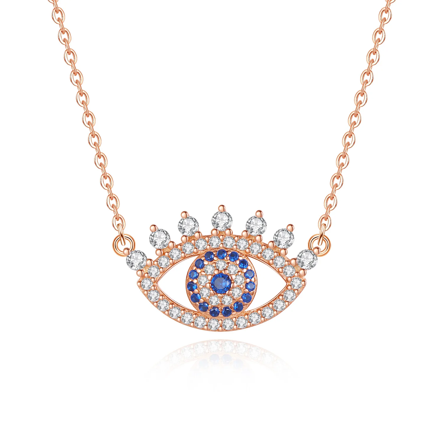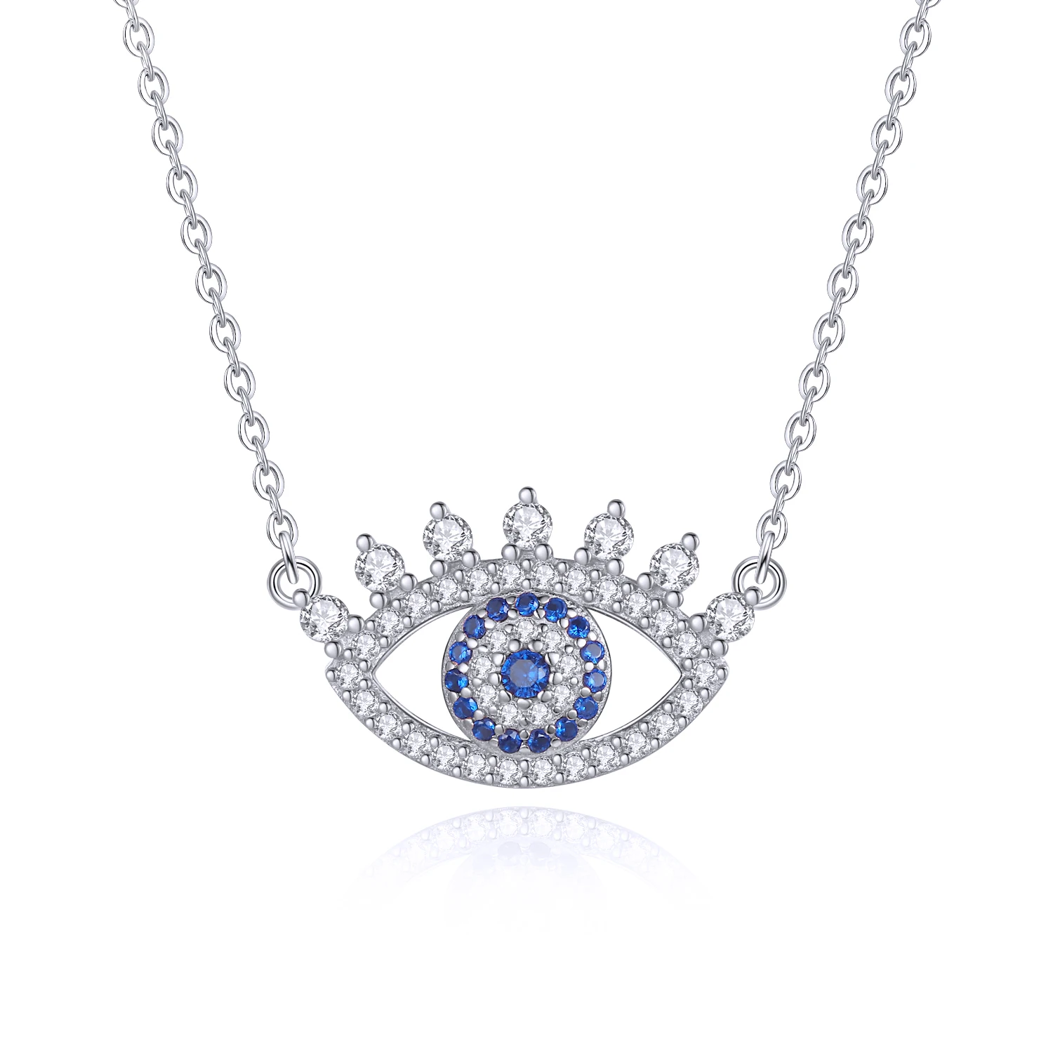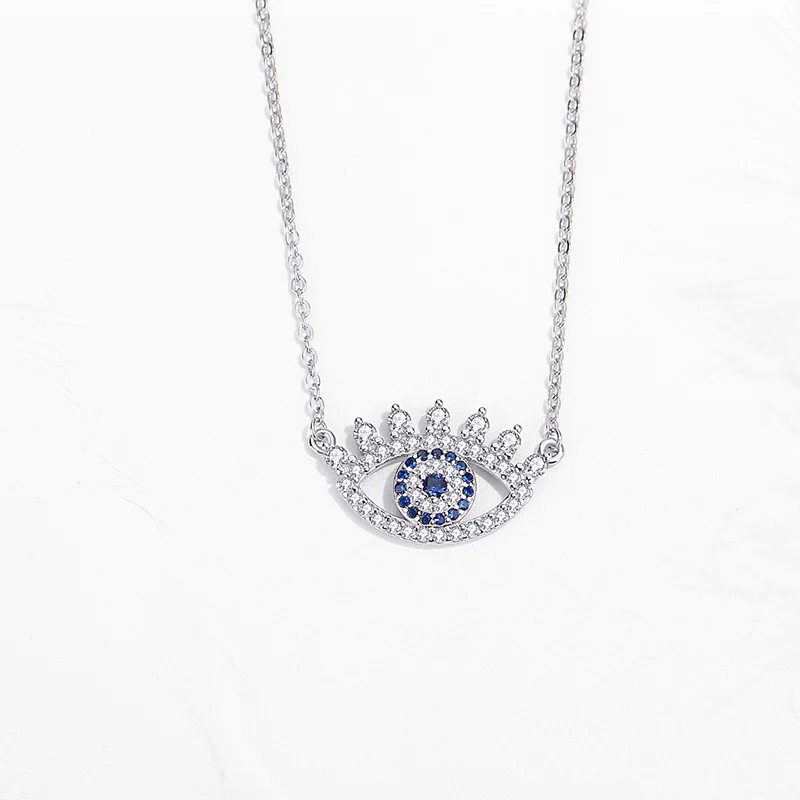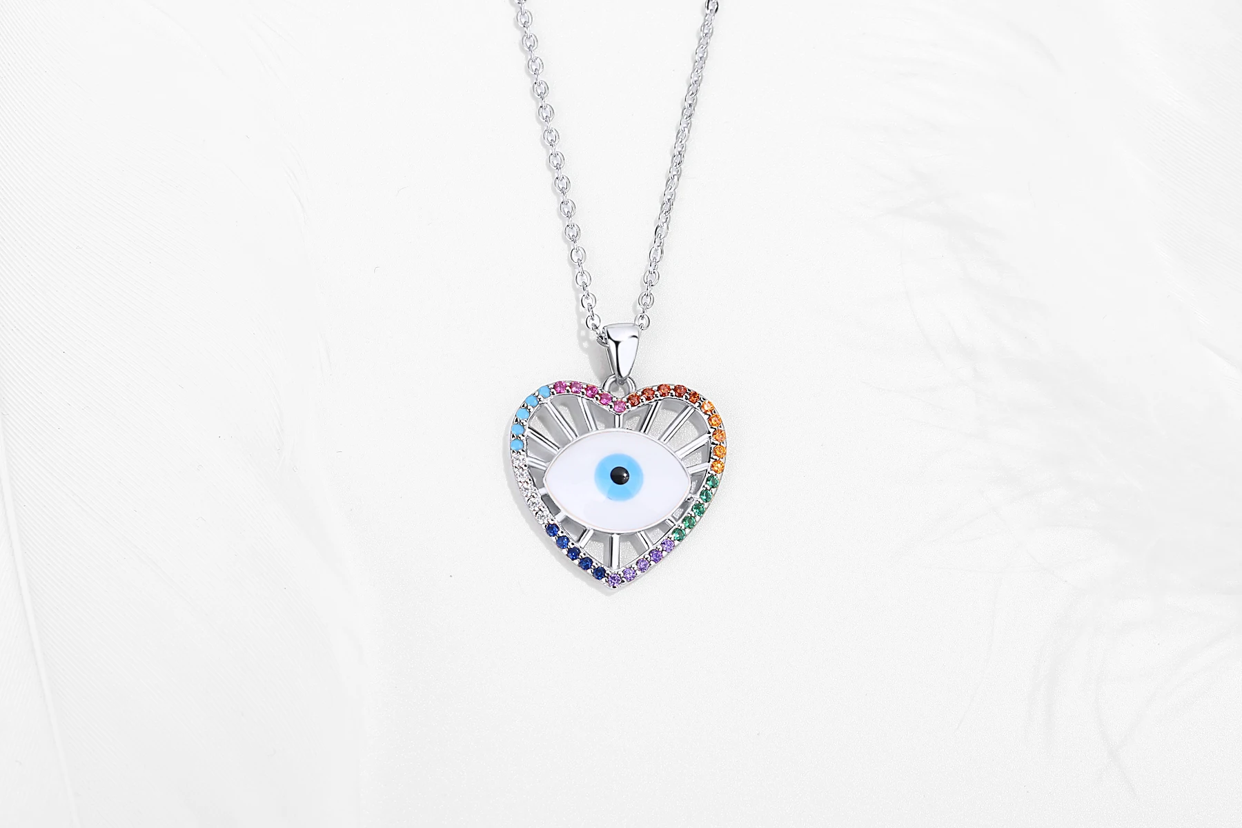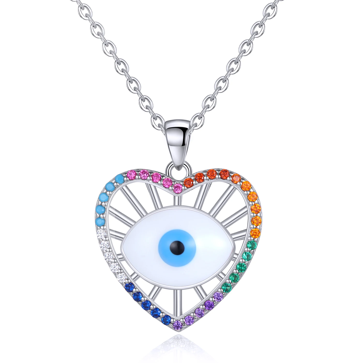 Kaletine Turkish Evil Eye Necklace Crystal Lucky Heart Eye Pendant 925 Sterling Silver Necklace Choker Lady Charm Jewelry