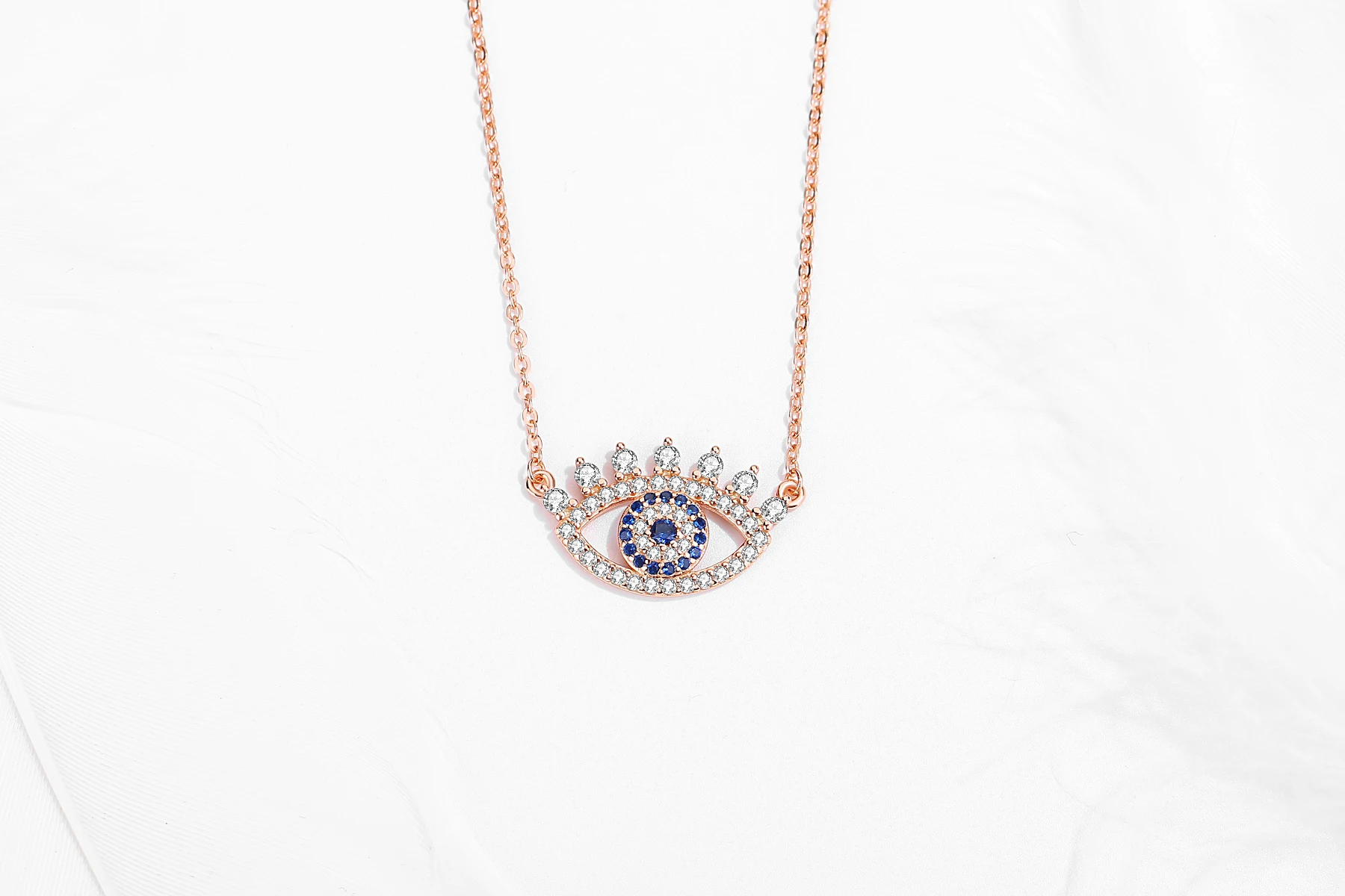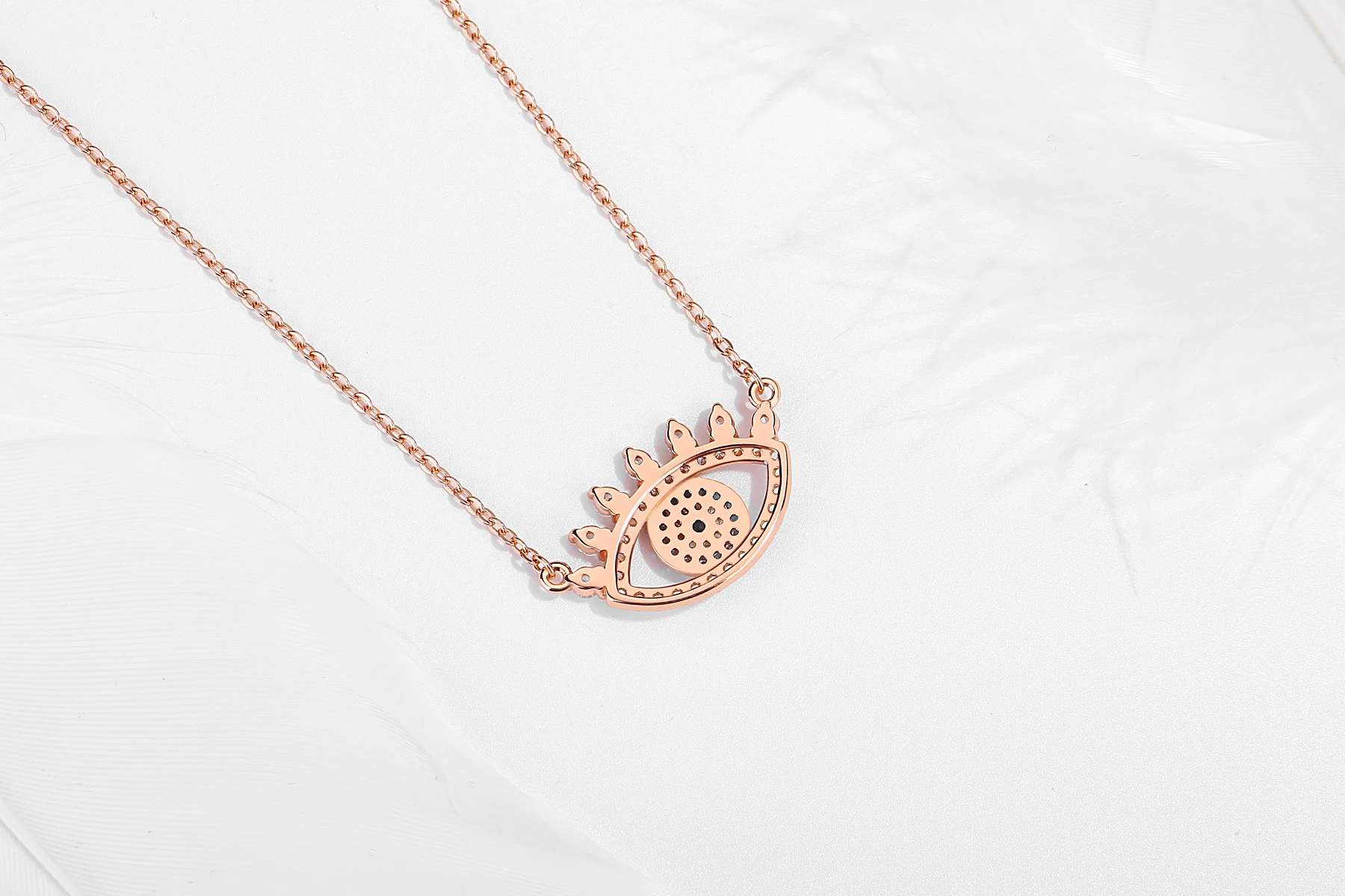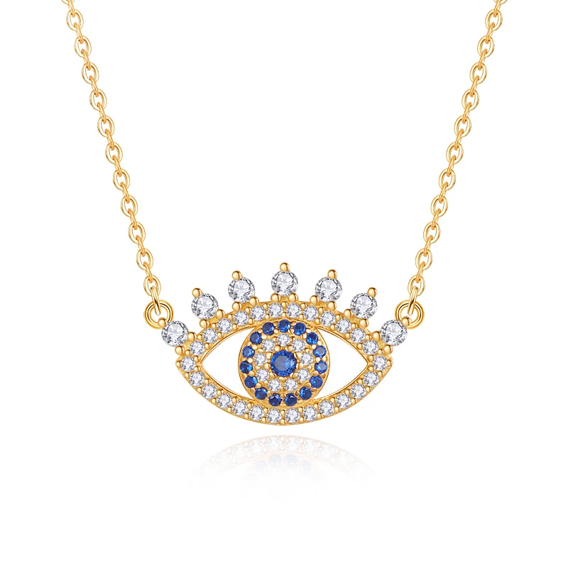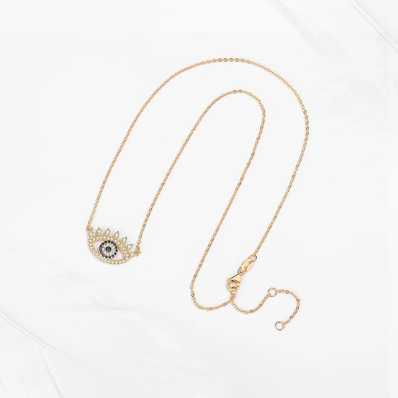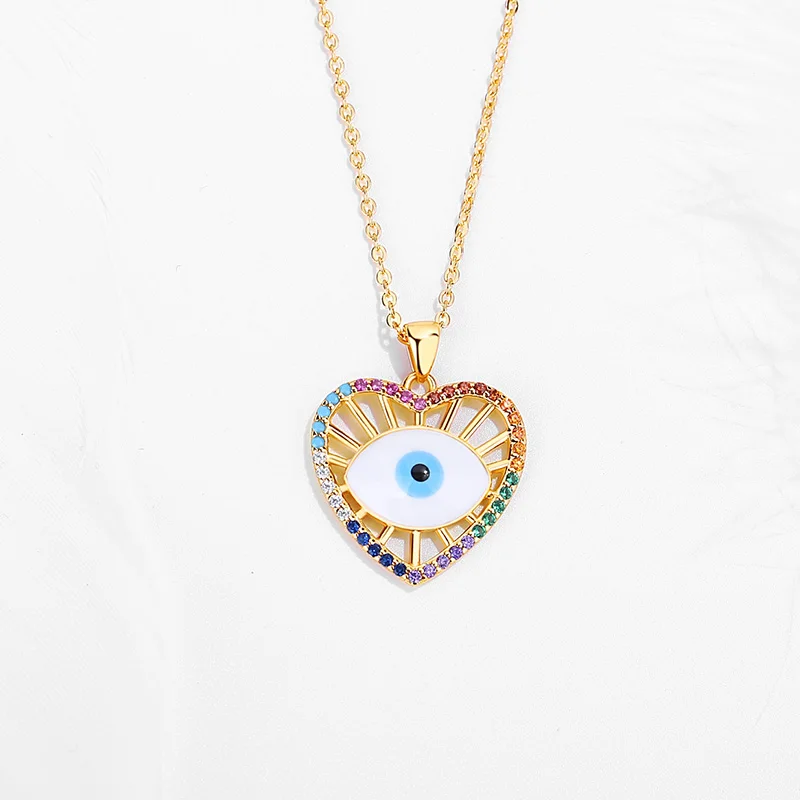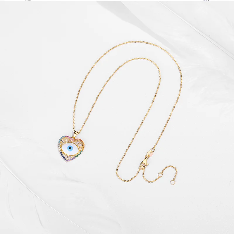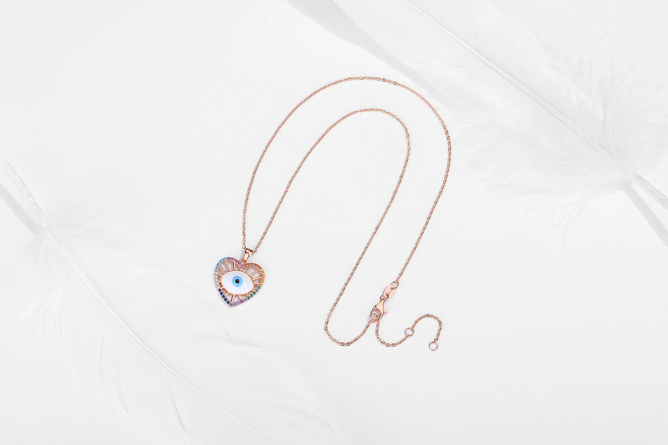 Kaletine Turkish Evil Eye Necklace Crystal Lucky Heart Eye Pendant 925 Sterling Silver Necklace Choker Lady Charm Jewelry